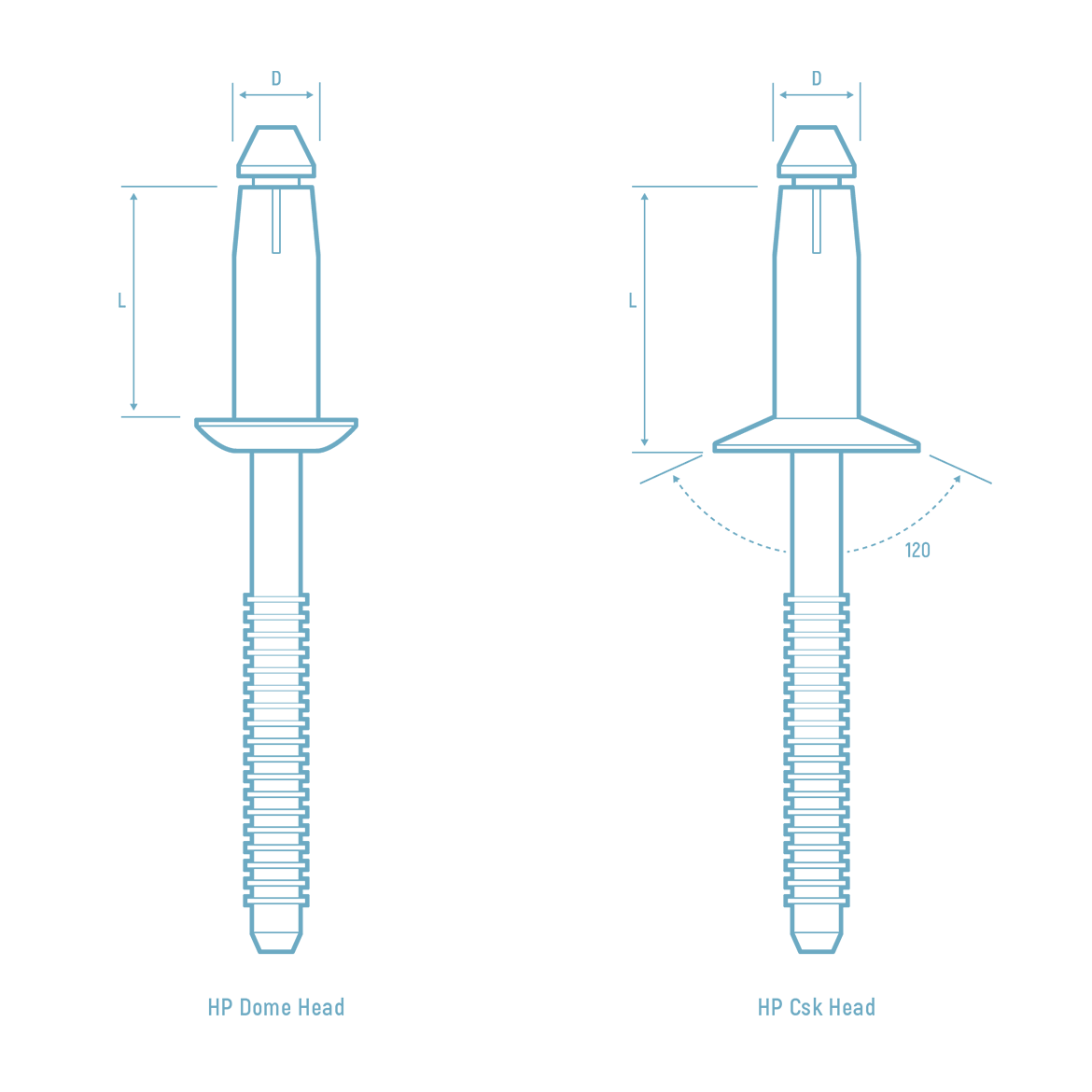 尾部球型设计,铆接时钉芯将拉钉钉体末端拉成膨大鼓型,夹紧铆接物件,具备高承载功能,抗振能力高, 铆接强度高,适用于薄板铆接。